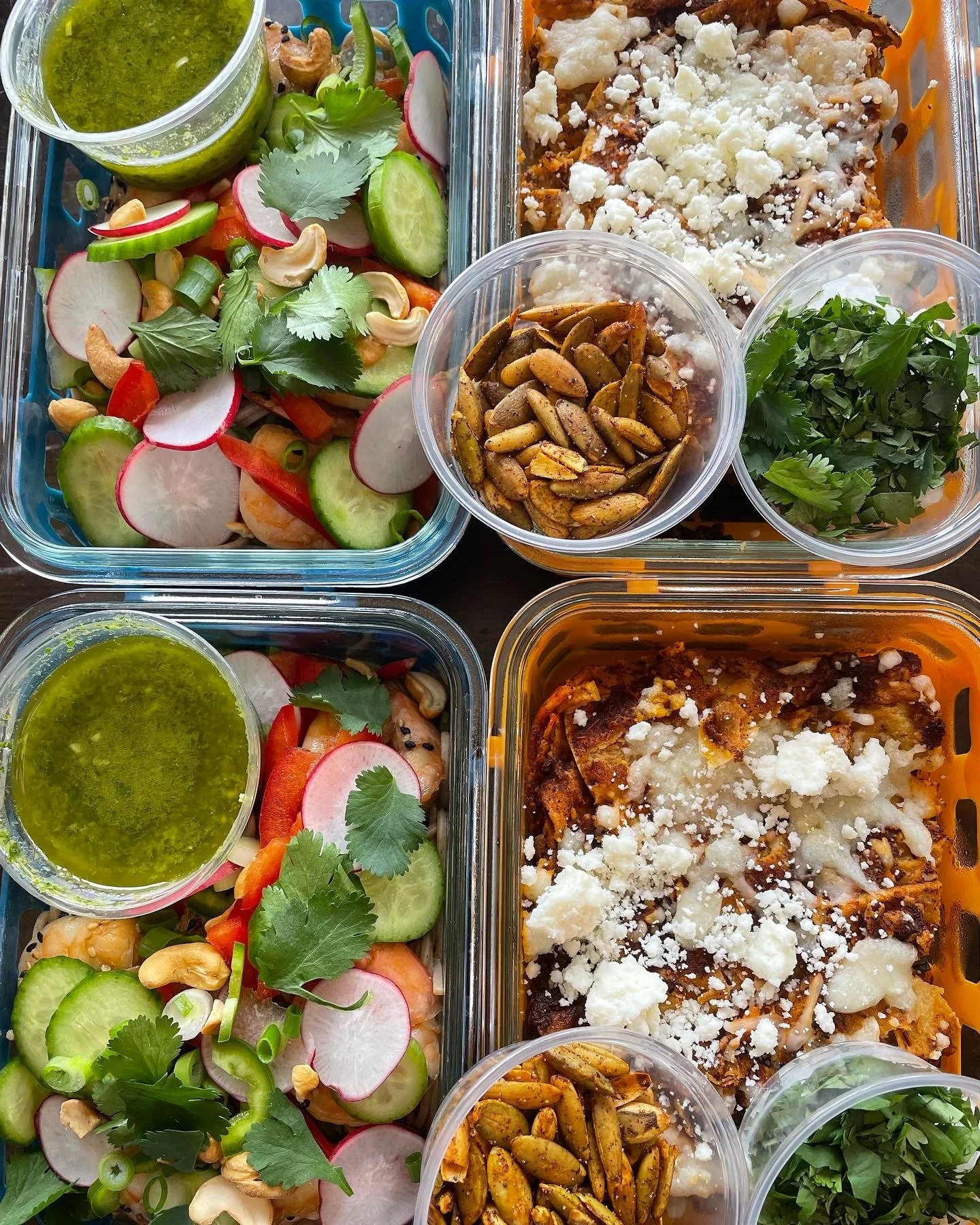 Chicken verde enchiladas, black beans, bell pepper, spinach
